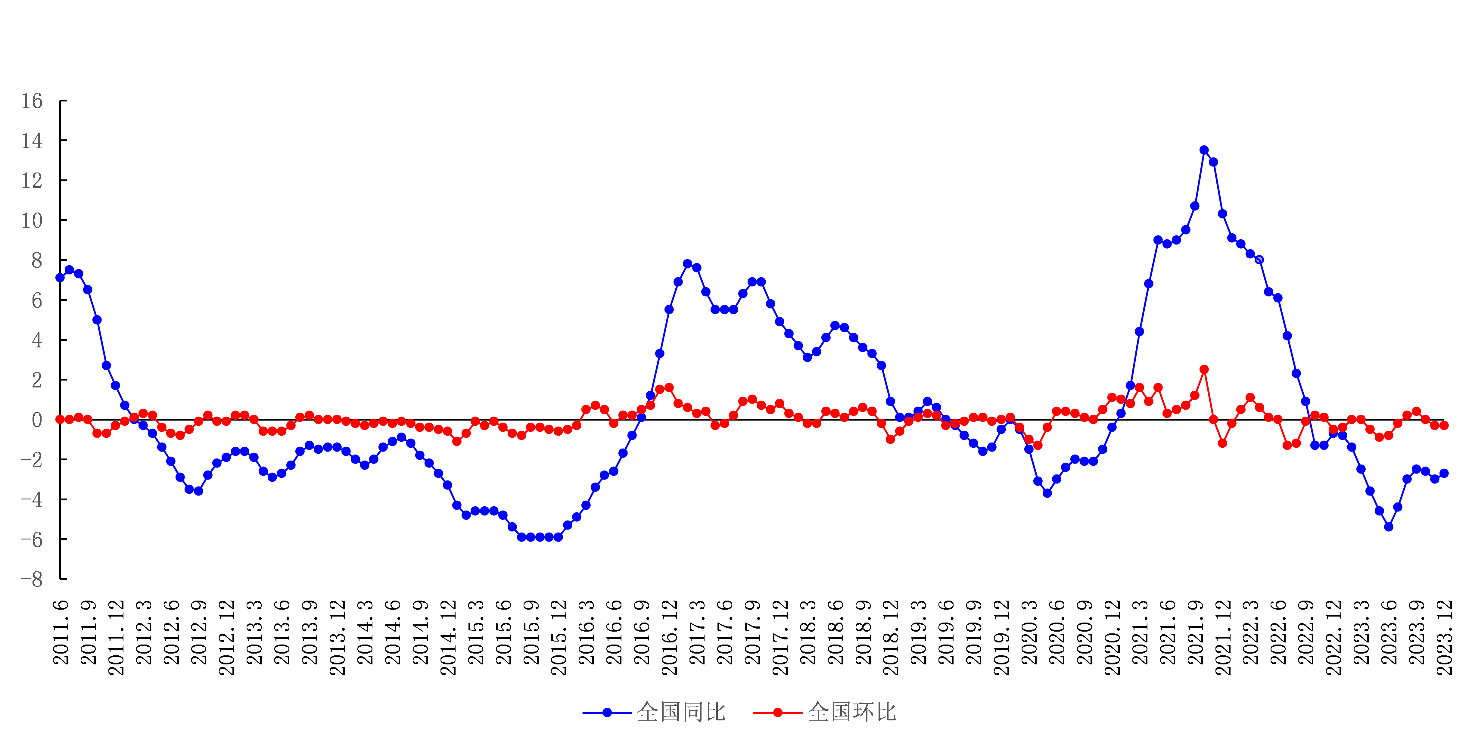 2011年6月—2023年12月全國(guó)工業(yè)生產(chǎn)者出廠價(jià)格指數(shù)(PPI)情況(二)