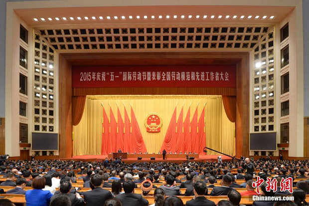 4月28日,2015年慶祝“五一”國際勞動節暨表彰全國勞動模范和先進工作者大會28日在北京人民大會堂隆重舉行。