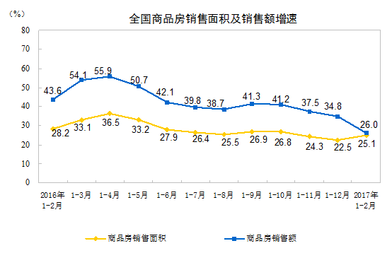 2017年1-2月份全國(guó)房地產(chǎn)開(kāi)發(fā)投資和銷售情況