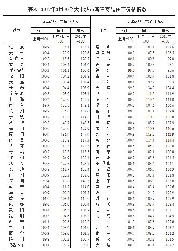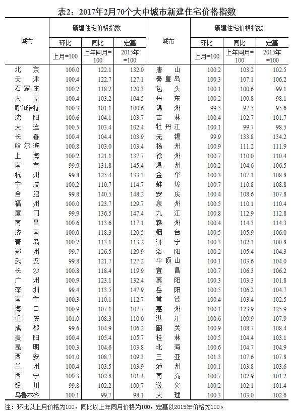 2017年2月份70個大中城市住宅銷售價格變動情況