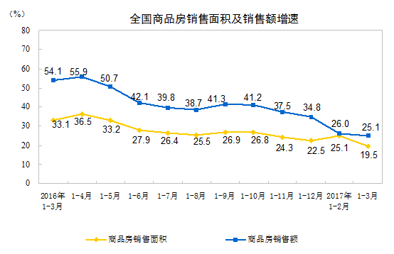 表1 2017年1-3月全國房地產開發和銷售情況 |