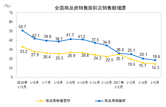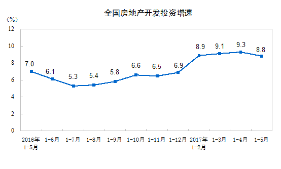 2017年1-5月份全國房地產(chǎn)開發(fā)投資和銷售情況
