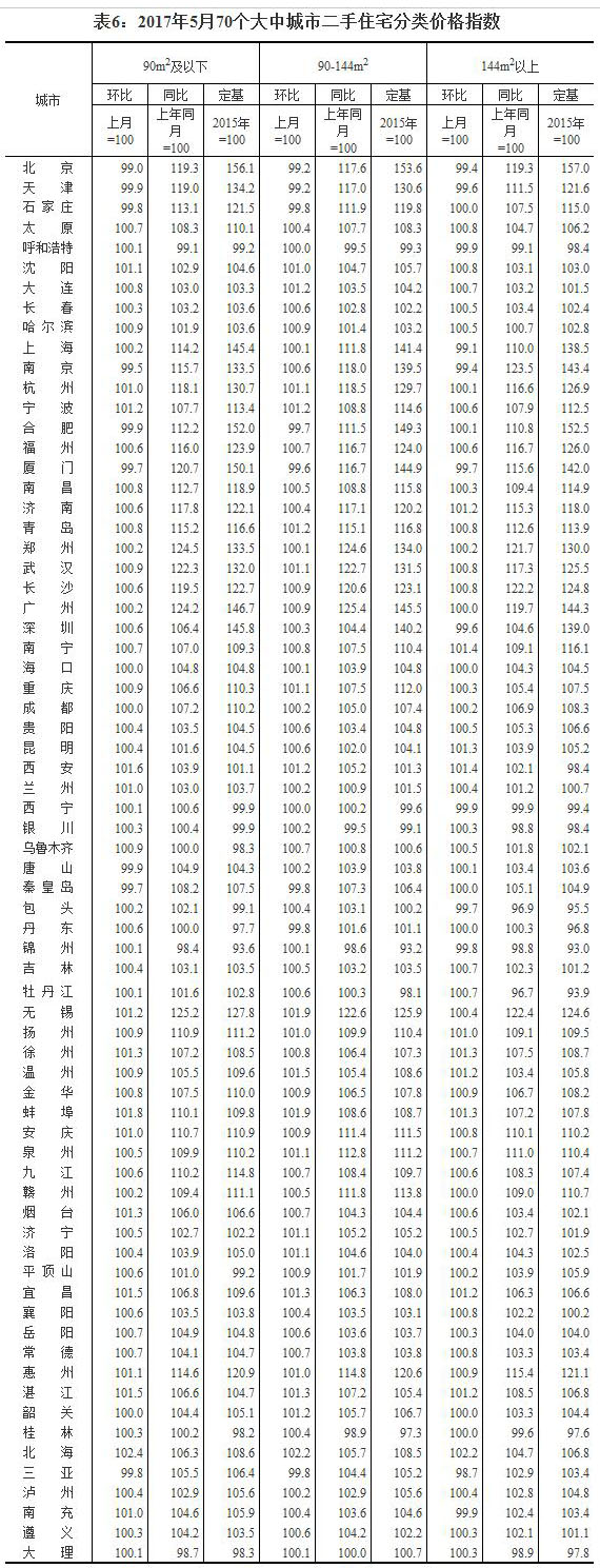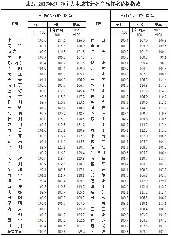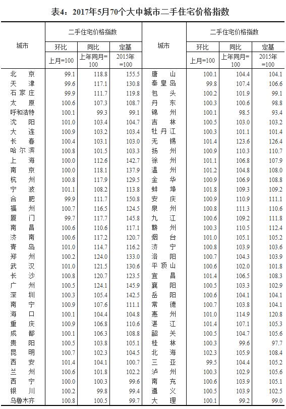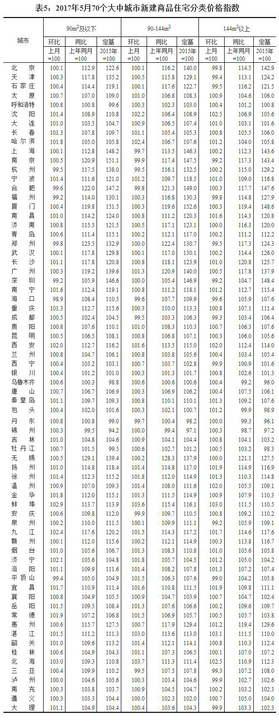 2017年5月份70個大中城市住宅銷售價格變動情況