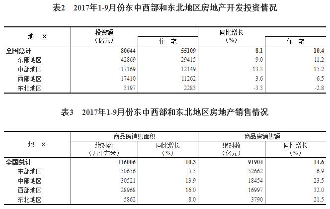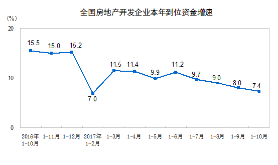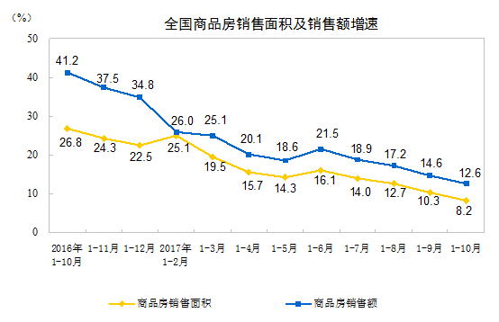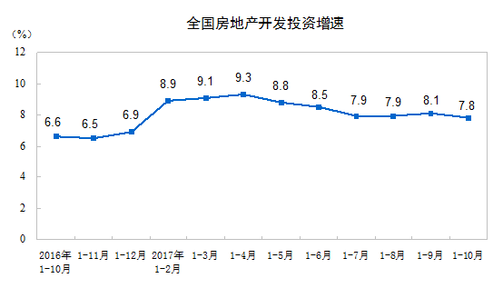 2017年1-10月份全國(guó)房地產(chǎn)開發(fā)投資和銷售情況