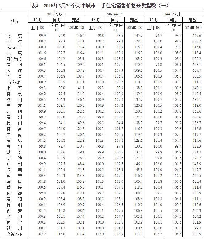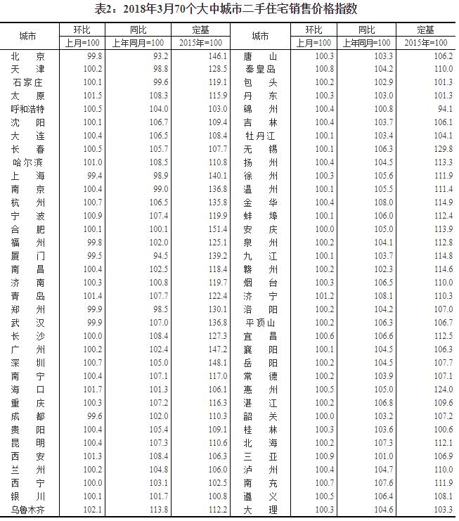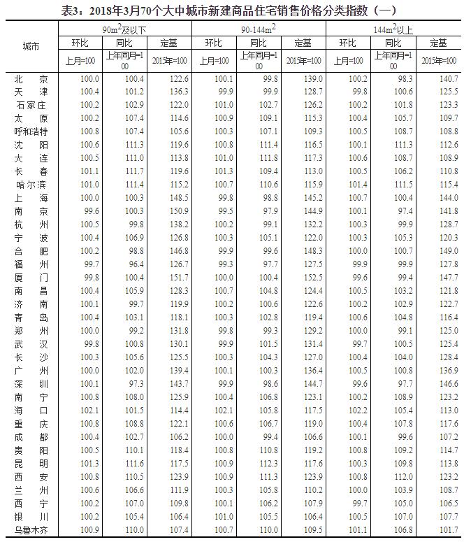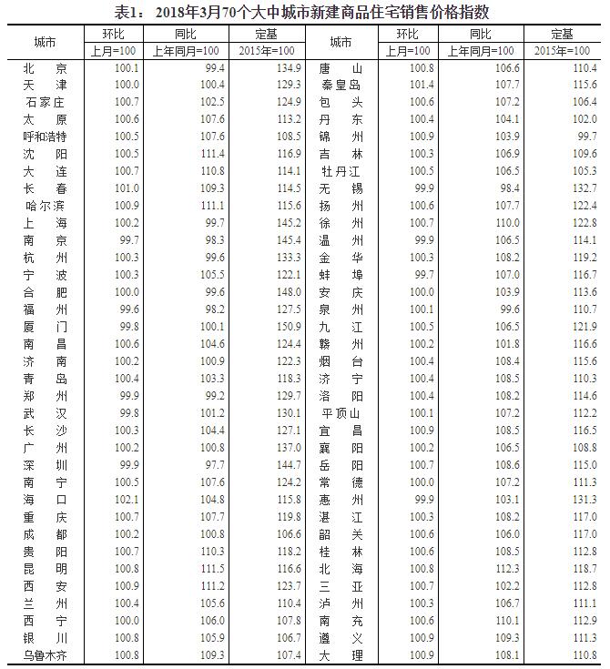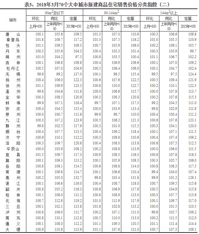 2018年3月份70個大中城市住宅銷售價格變動情況