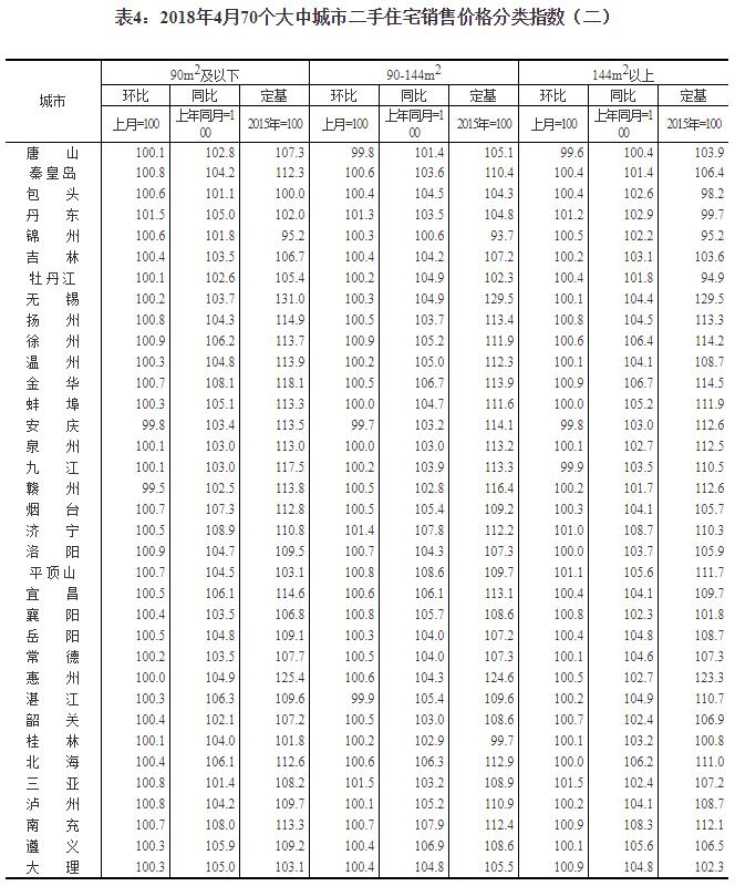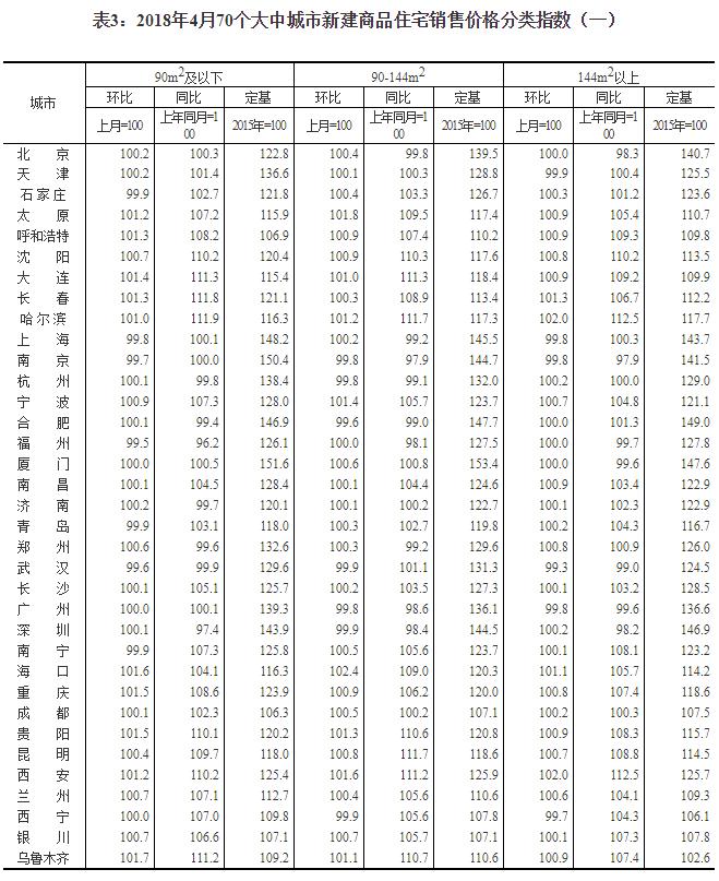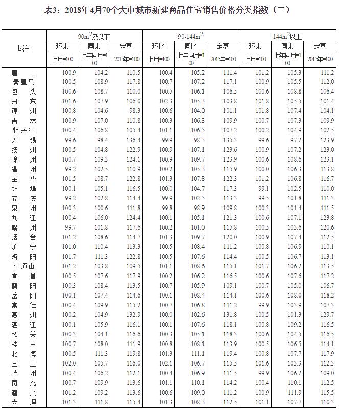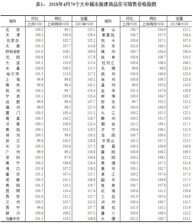 2018年4月份70個大中城市商品住宅銷售價格變動情況