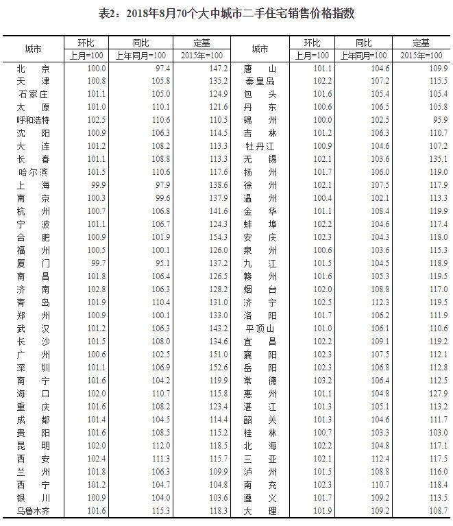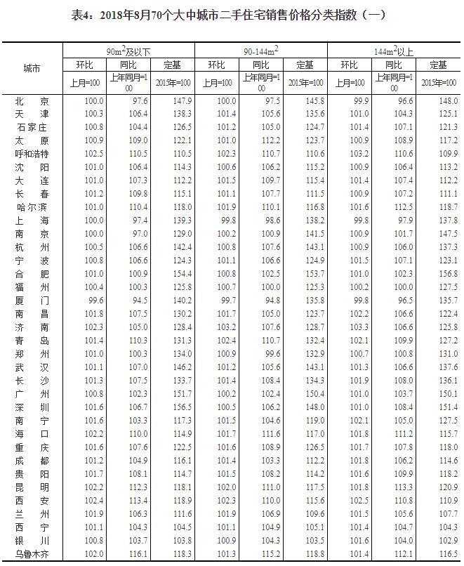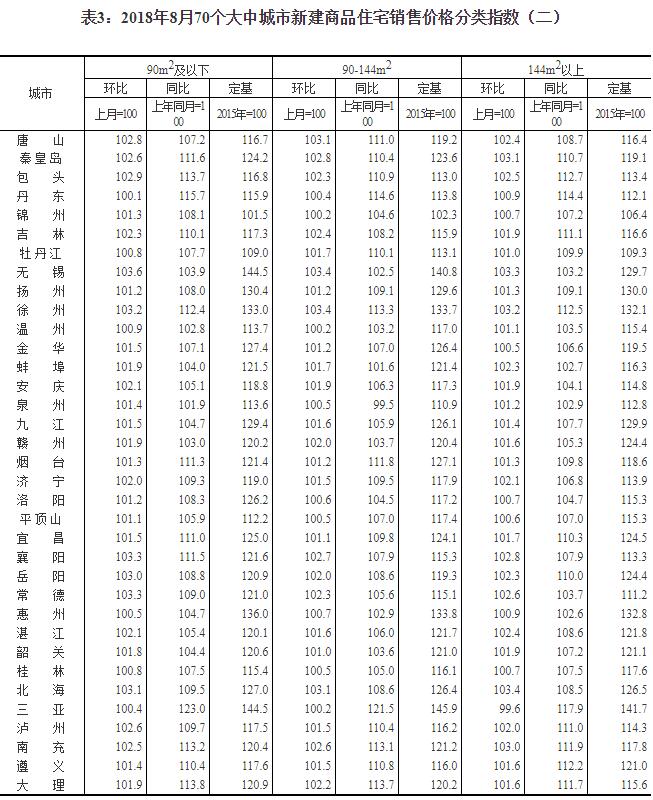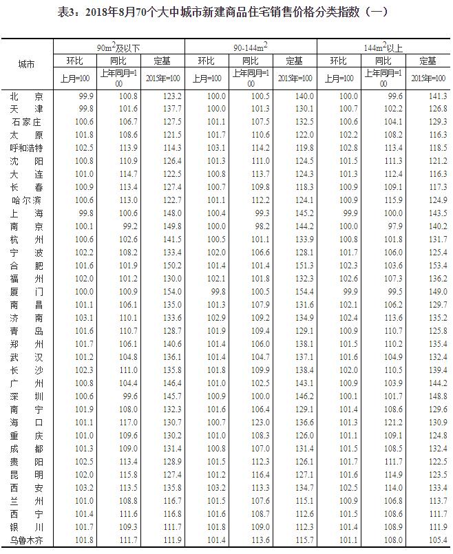 2018年8月份70個大中城市住宅銷售價格變動情況