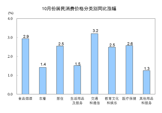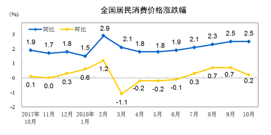 2018年10月份居民消費(fèi)價(jià)格同比上漲2.5%