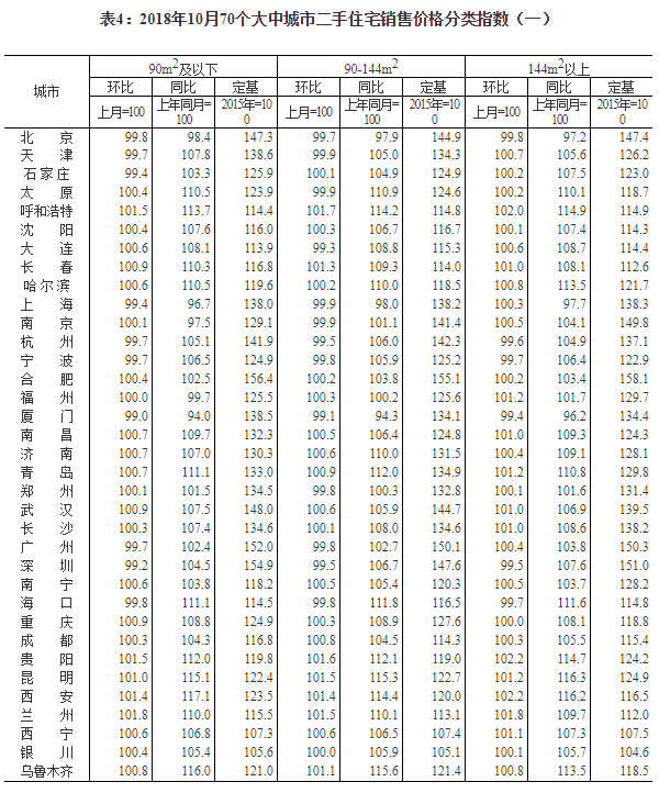2018年10月份70個大中城市商品住宅銷售價格變動情況