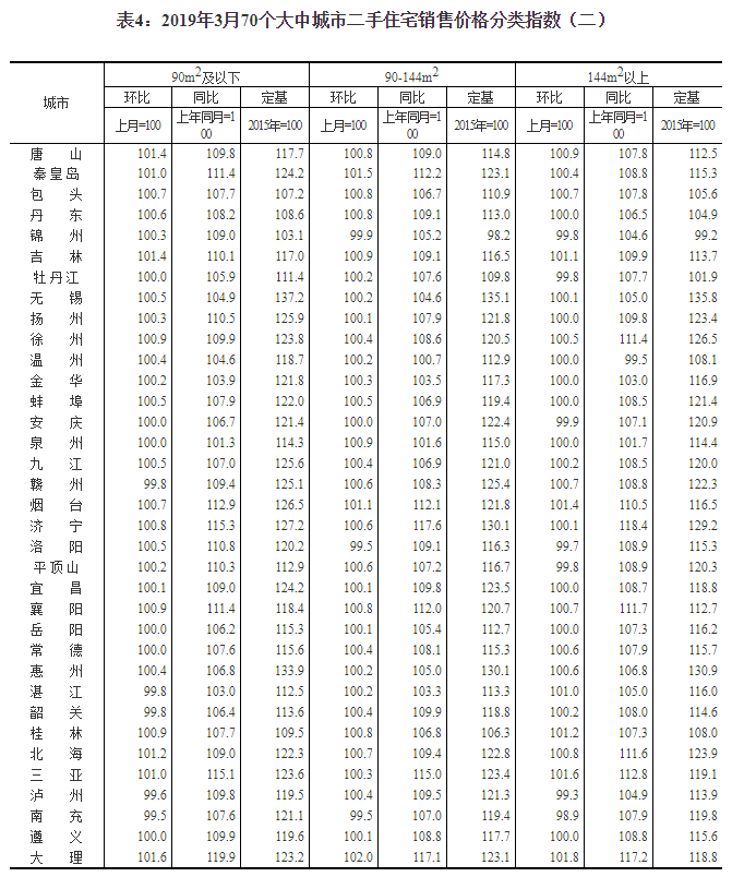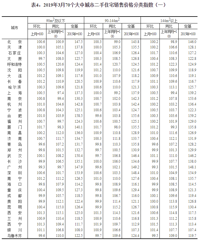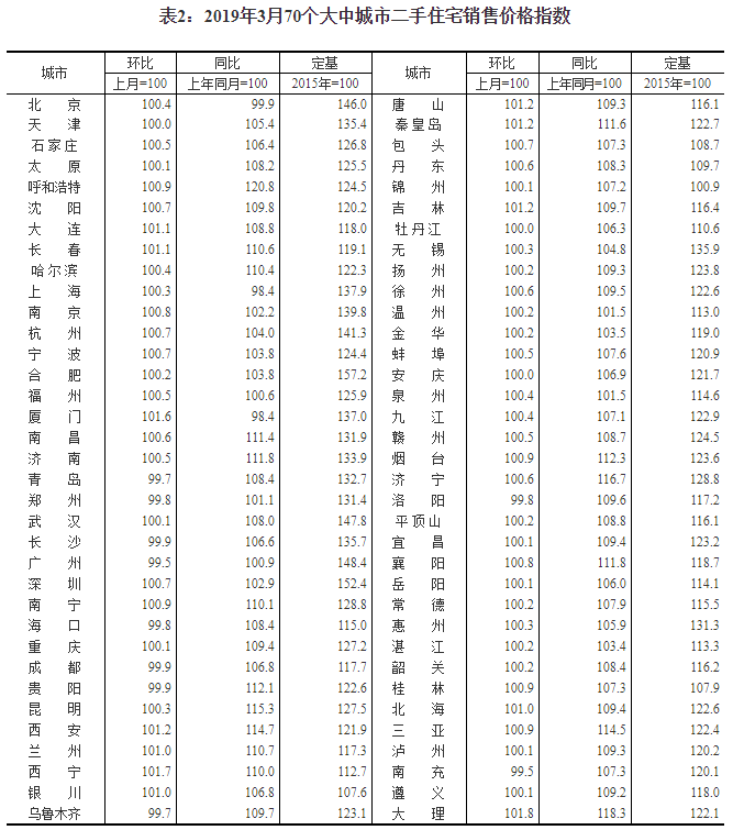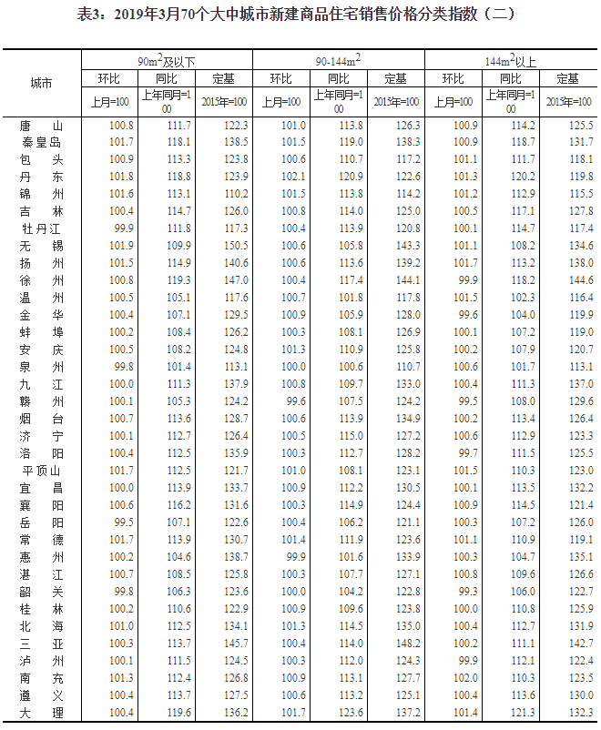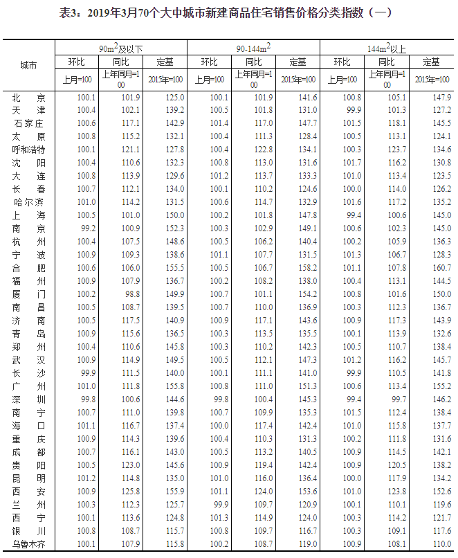 2019年3月份70個(gè)大中城市商品住宅銷售價(jià)格變動(dòng)情況