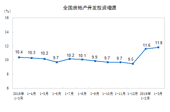 2019年1-3月份,全國房地產開發投資23803億元,同比增長11.8%,增速比1-2月份提高0.2個百分點。其中,住宅投資17256億元,增長17.3%,增速回落0.7個百分點。住宅投資占房地產開發投資的比重為72.5%。