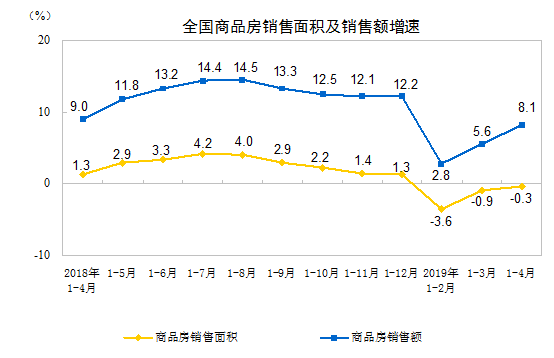 2019年1-4月份全國房地產開發(fā)投資和銷售情況