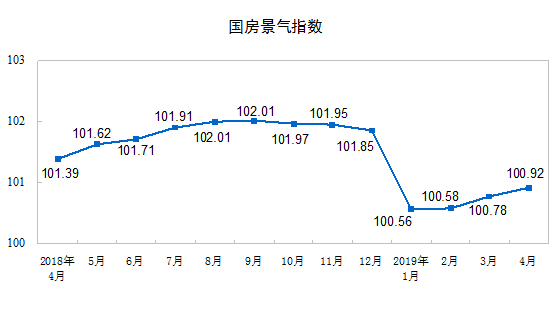 4月份,房地產開發(fā)景氣指數(簡稱“國房景氣指數”)為100.92,比3月份提高0.14點。