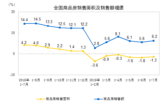 2019年1-7月份全國(guó)房地產(chǎn)開(kāi)發(fā)投資和銷售情況