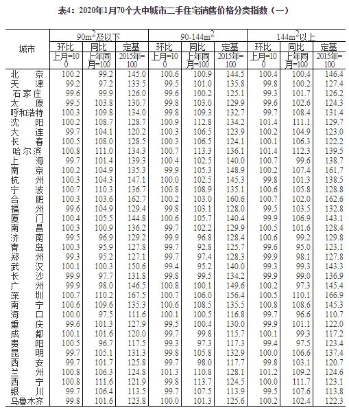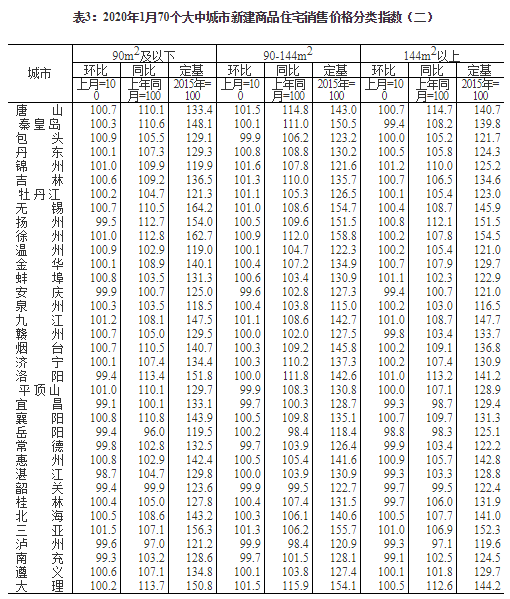 2020年1月份70個(gè)大中城市商品住宅銷售價(jià)格變動(dòng)情況