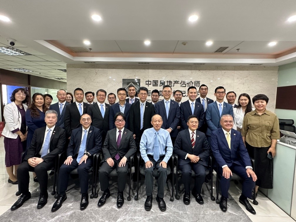 參加會談的還有中央港澳辦五局、中聯(lián)辦教育科技部的有關(guān)同志;香港測量師學(xué)會前任會長賴旭輝先生、趙錦權(quán)先生以及產(chǎn)業(yè)測量組、建筑測量組、工料測量組等七大組別的主席;中房學(xué)副秘書長王霞、劉冬寧以及海外交流部主任李娟等。