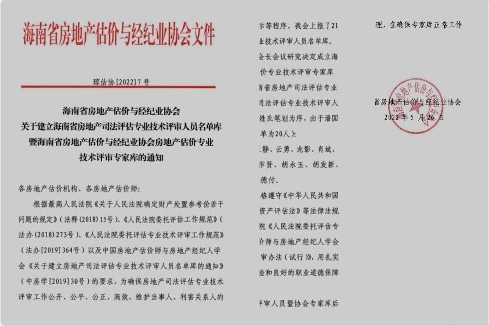 海南協(xié)會成立專家?guī)欤瑢iT解決司法鑒定評估中的房地產(chǎn)評估糾紛問題。