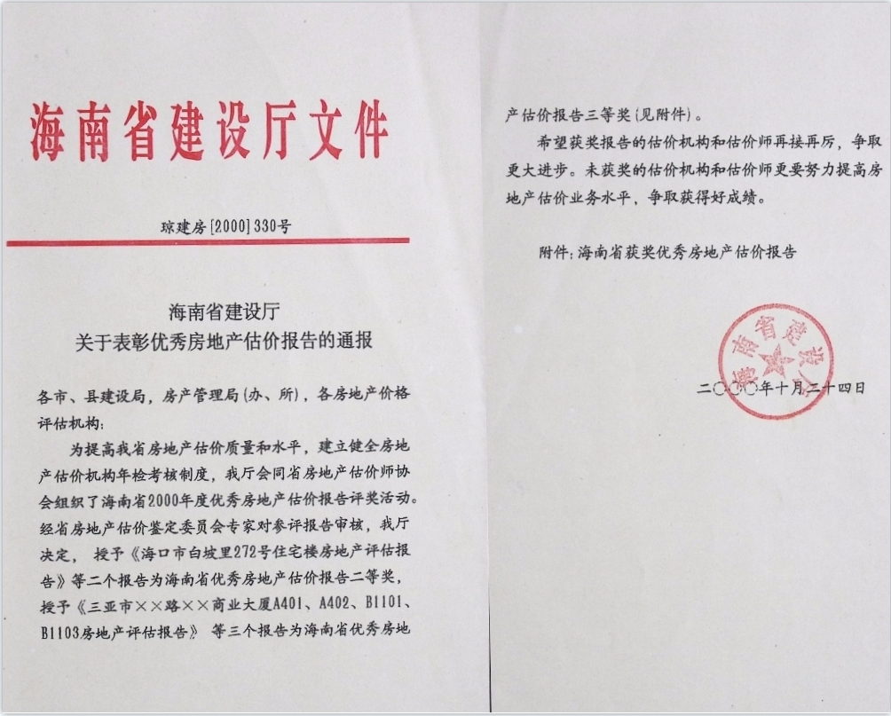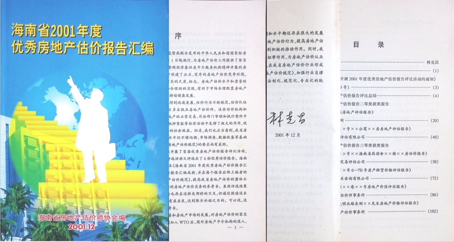 2.2000年-2004年,連續(xù)開展優(yōu)秀房地產(chǎn)估價報告評獎活動,并將優(yōu)秀報告進行匯編總結(jié),相互學習借鑒,不斷提升海南房地產(chǎn)評估行業(yè)整體水平。