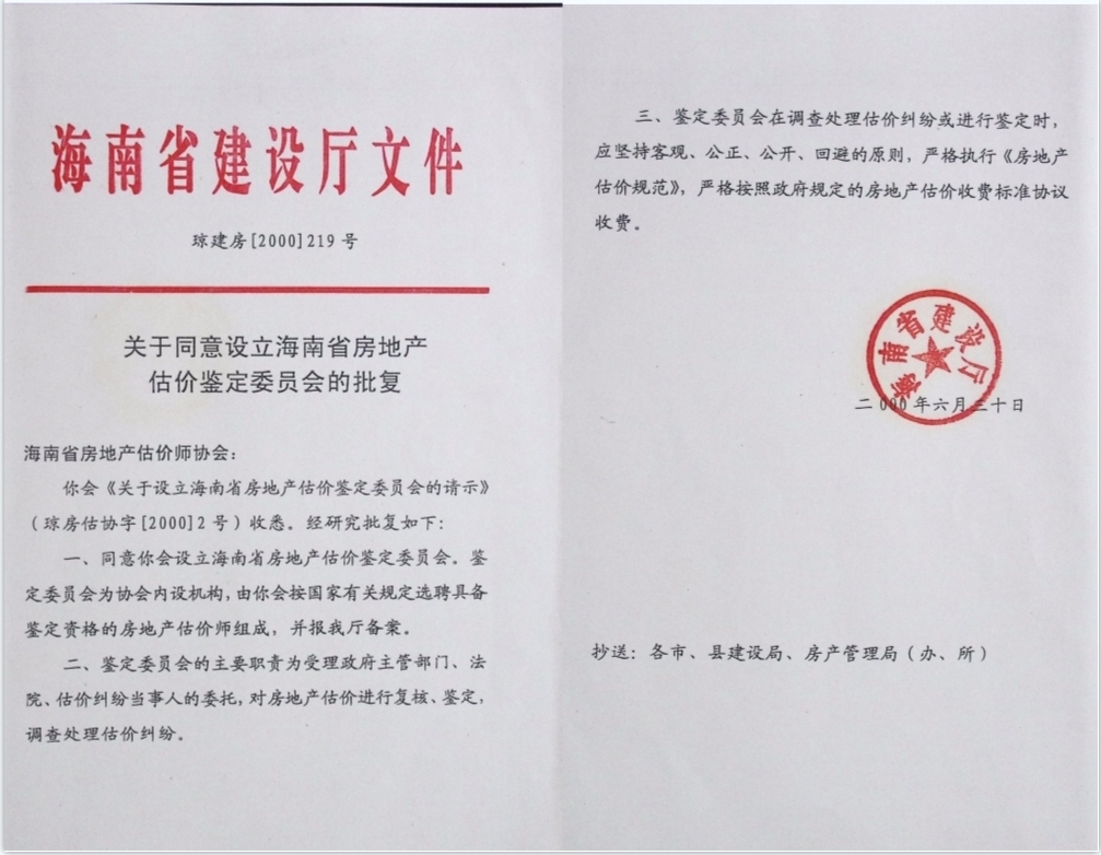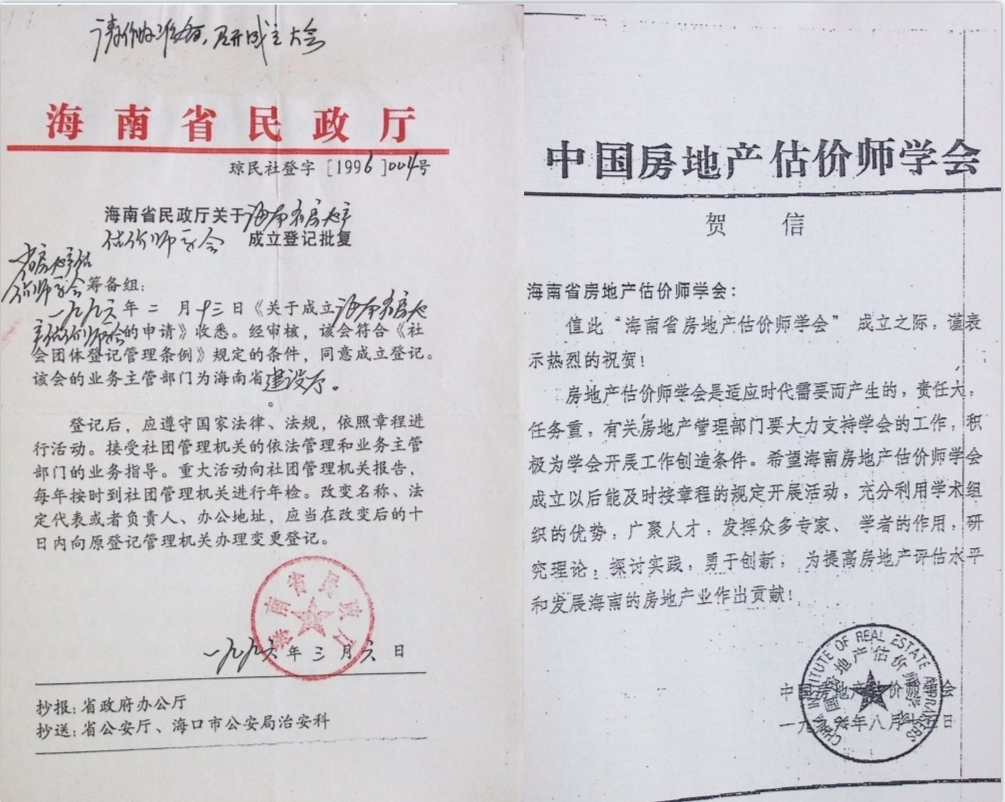 1996年3月6日,經(jīng)海南省民政廳批復(fù)海南省房地產(chǎn)估