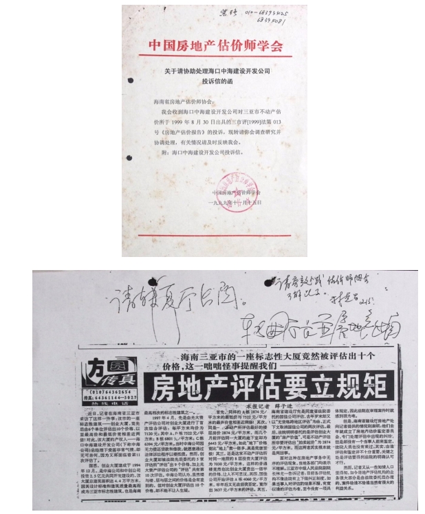 1999年11月15日,中房學來函要求海南協(xié)會協(xié)助處理《房地產(chǎn)估價報告》相關(guān)投訴,同時《中國法制報》也刊登《房地產(chǎn)評估要立規(guī)矩》文章,這些事件大大推進了海南房地產(chǎn)評估行業(yè)法制化、規(guī)范化發(fā)展進程。