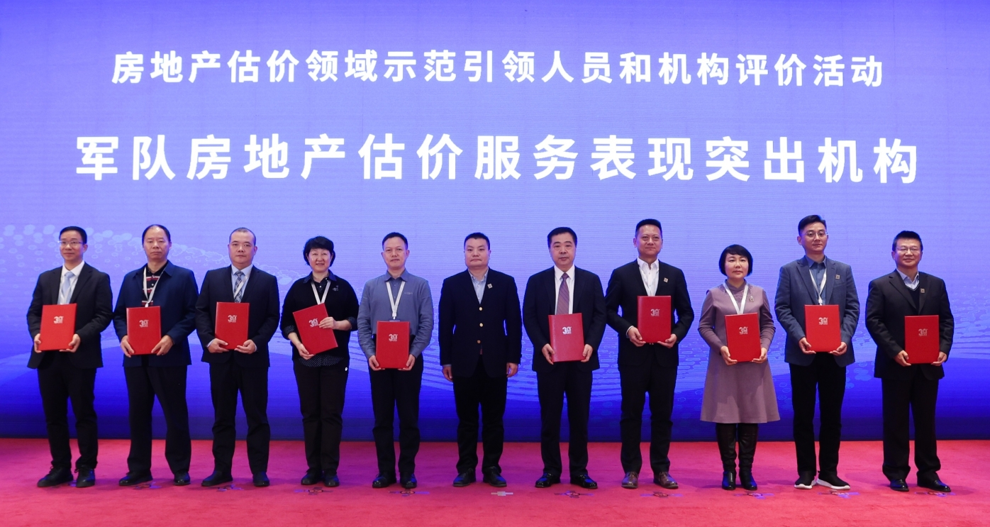 解放軍某部楊建輝同志與軍隊房地產估價服務表現突出機構代表合影